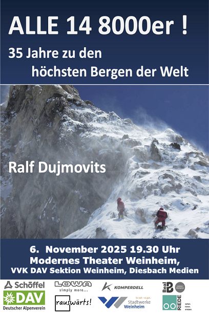 Es erwartet Euch ein abwechslungsreicher Vortrag von Spitzenalpinist Ralf Dujmovits, der euch mit