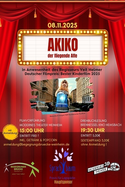 Infos und Anfragen bitte telefonisch von 17:00 - 19:00 Uhr unter 06201-62155 oder einfach per Mail an zentrale@kinoweinheim.de.
